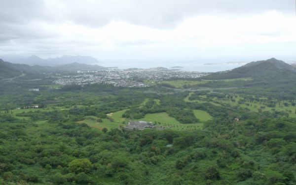 View from the Pali Lookout toward Kailua and Kanehoe.