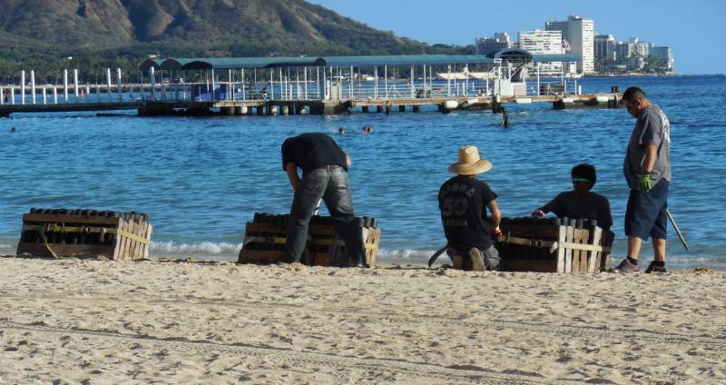 They have fireworks every Friday at the Ilikai. These guys are setting them up.