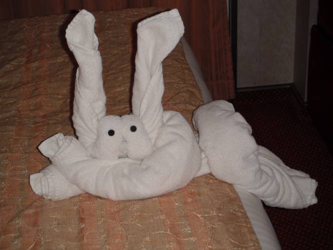 One of the towel animals that the cabin steward made for us