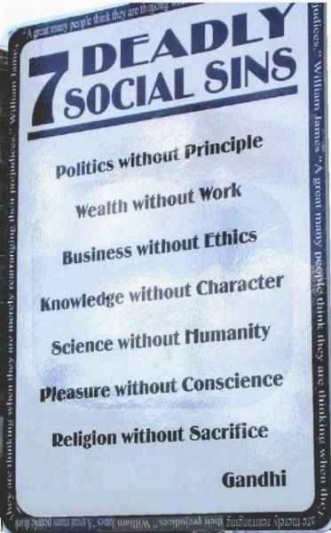 7 Deadly Social Sins -- Gandhi's words of wisdom.
