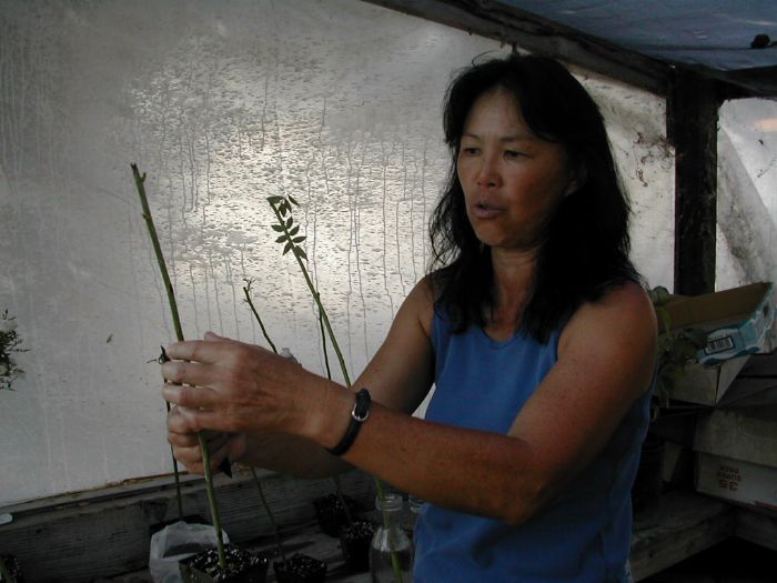 Burling Leong demonstrating how to bud a tree rose.