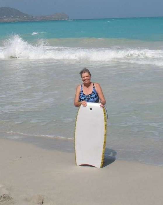 Pat with her boogie board in Kailua