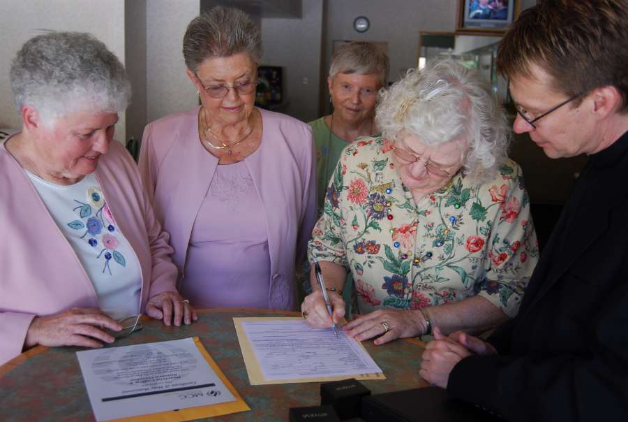Our witnesses, Nancy and Lea signing the documents.