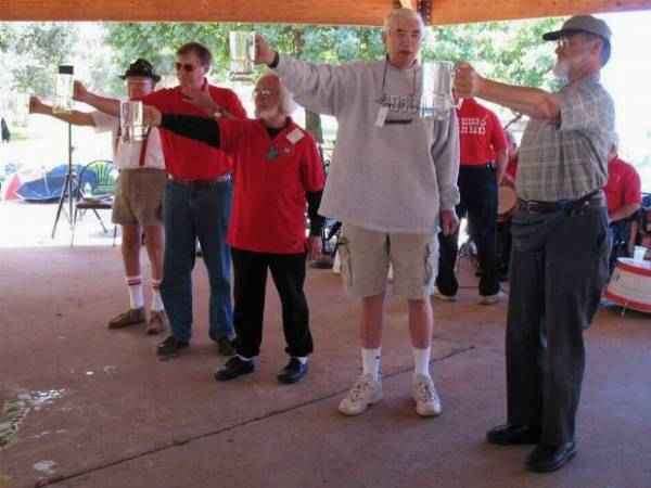 The stein raising contest -- men only.