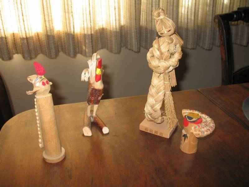 Pat's Japanese and Swedish carved roosters.