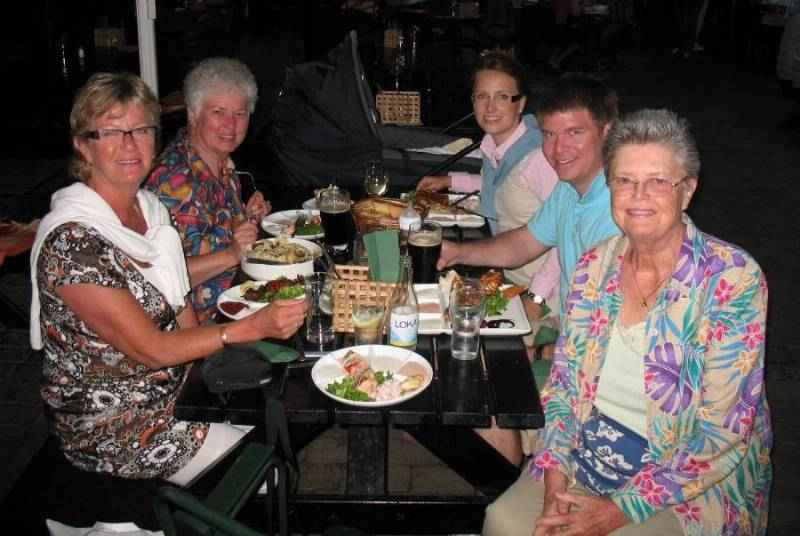 A farewell dinner with Ingalill, Sandy, the baby (Colin), Ava, Martin, and Pat.