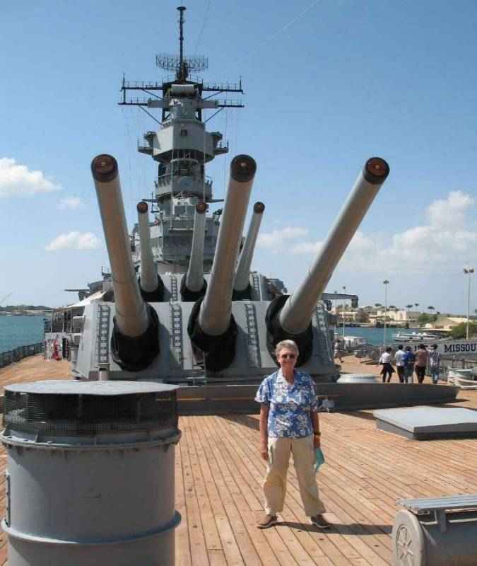 Pat on the deck of the Missouri -- she loves history.